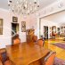 L’ingresso introduce a un salone triplo di rappresentanza, caratterizzato da un’atmosfera raffinata e da una incantevole vista mare, che diventa il vero protagonista dell’ambiente. I pavimenti in marmo e parquet conferiscono ulteriore eleganza agli spazi, donando un tono classico e accogliente a tutta la casa.